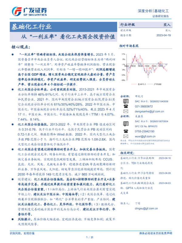 【广发证券】【20230419】20230419-广发证券-基础化工行业深度分析:从“一利五率”看化工央国企投资价值-31页 行业研究
