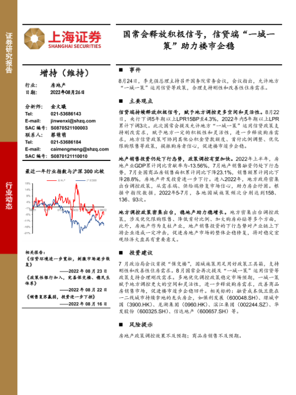 【上海证券】【20220826】国常会释放积极信号,信贷端“一城一策”助力楼市企稳-4页 行业研究
