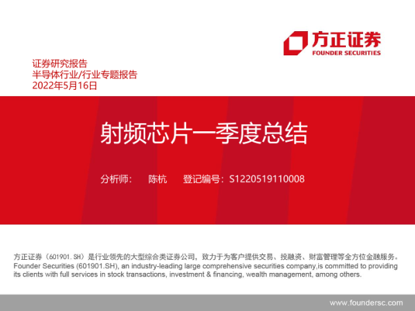 【方正证券】【20220516】半导体行业:射频芯片一季度总结-17页 行业研究