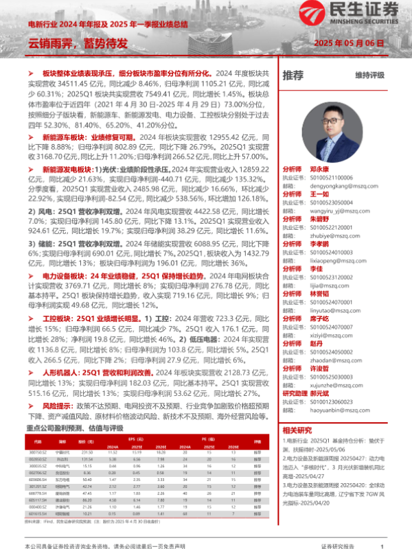 【民生证券】【20250506】电新行业2024年年报及2025年一季报业绩总结-52页 证券期货研究报告