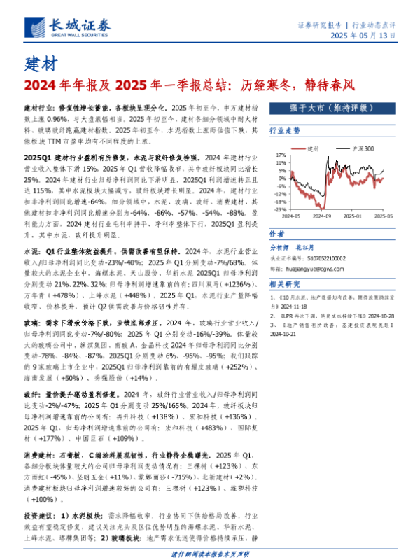 【长城证券】【20250513】建材行业2024年年报及2025年一季报总结-11页 证券期货研究报告