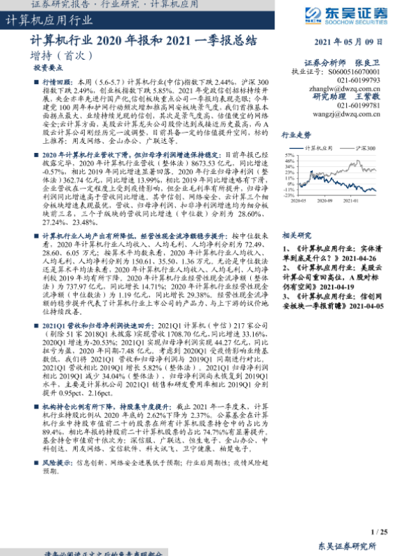 【东吴证券】【20210509】计算机行业2020年报和2021一季报总结-25页 行业研究