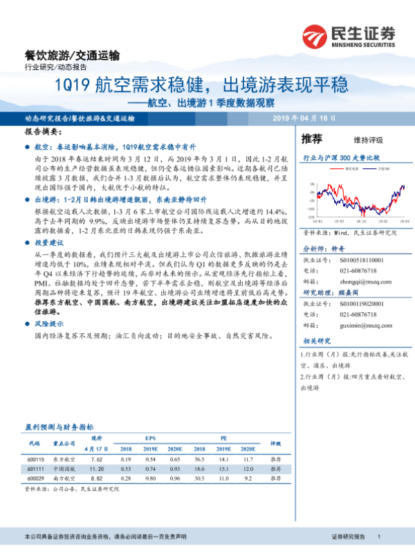 【民生证券】【20190418】1Q19航空需求稳健,出境游表现平稳-6页 行业研究