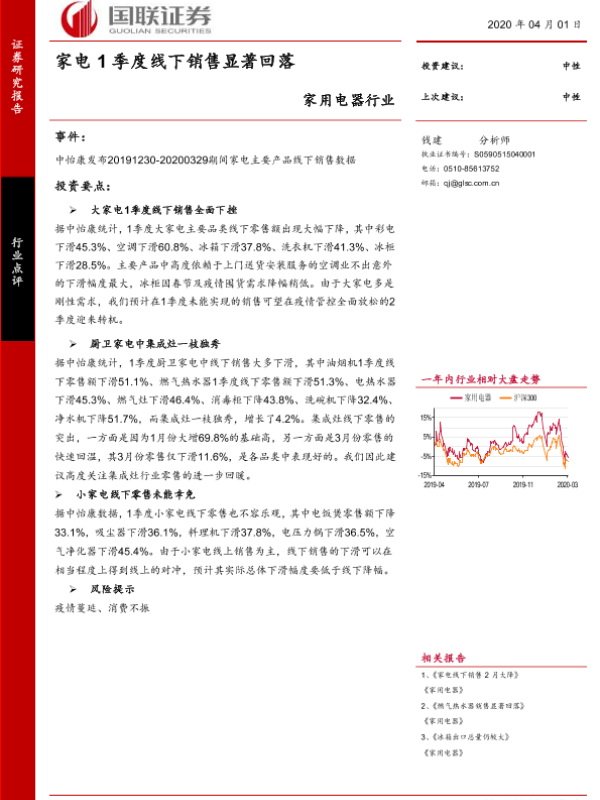 【国联证券】【20200401】家电1季度线下销售显著回落-4页 行业研究