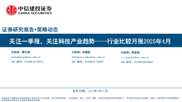 【中信建投证券】【20250331】行业比较月报2025年4月:关注一季报,关注科技产业趋势-35页 证券期货研究报告