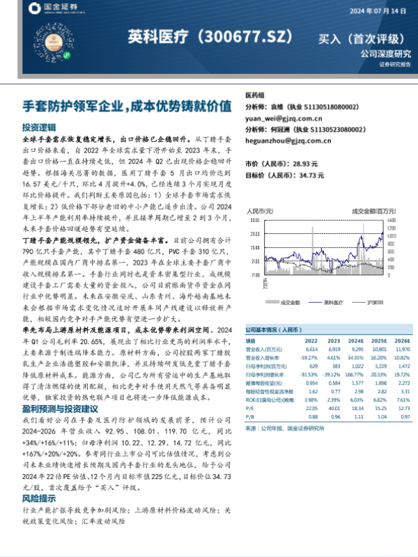 【国金证券】【20240714】英科医疗:手套防护领军企业,成本优势铸就价值-21页 行业研究
