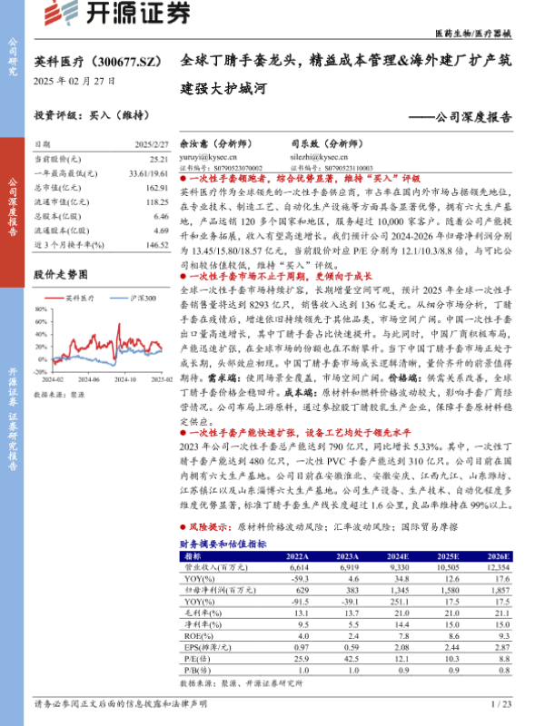 【开源证券】【20250227】英科医疗-公司深度报告:全球丁腈手套龙头,精益成本管理&海外建厂扩产筑建强大护城河-23页 公司研究