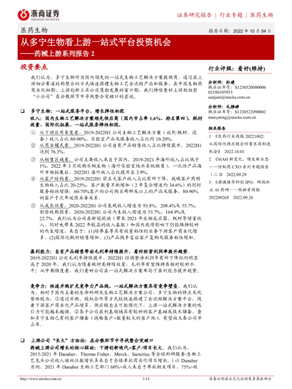 【浙商证券】【20221004】从多宁生物看上游一站式平台投资机会-14页 行业研究