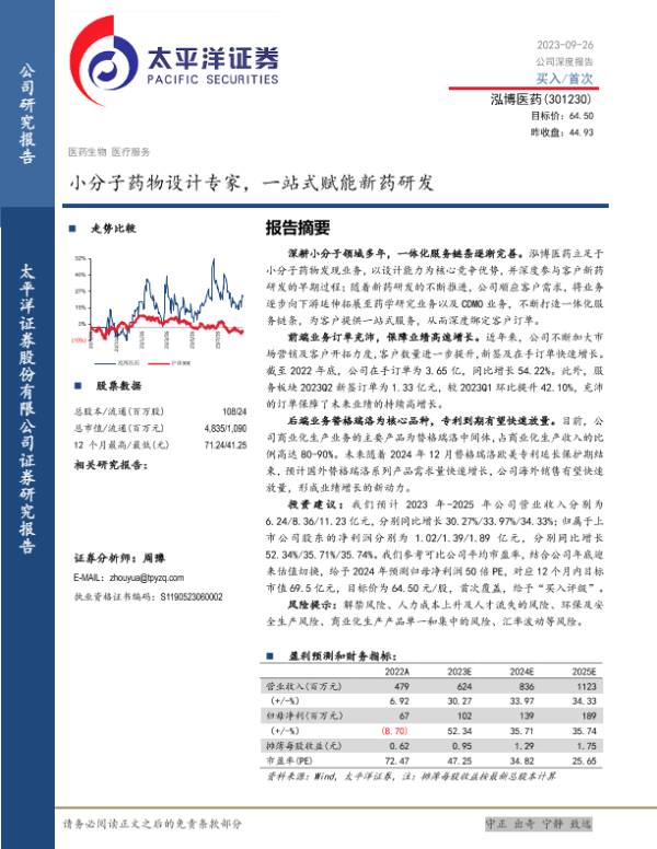 【太平洋证券】【20230926】小分子药物设计专家,一站式赋能新药研发-26页 行业研究