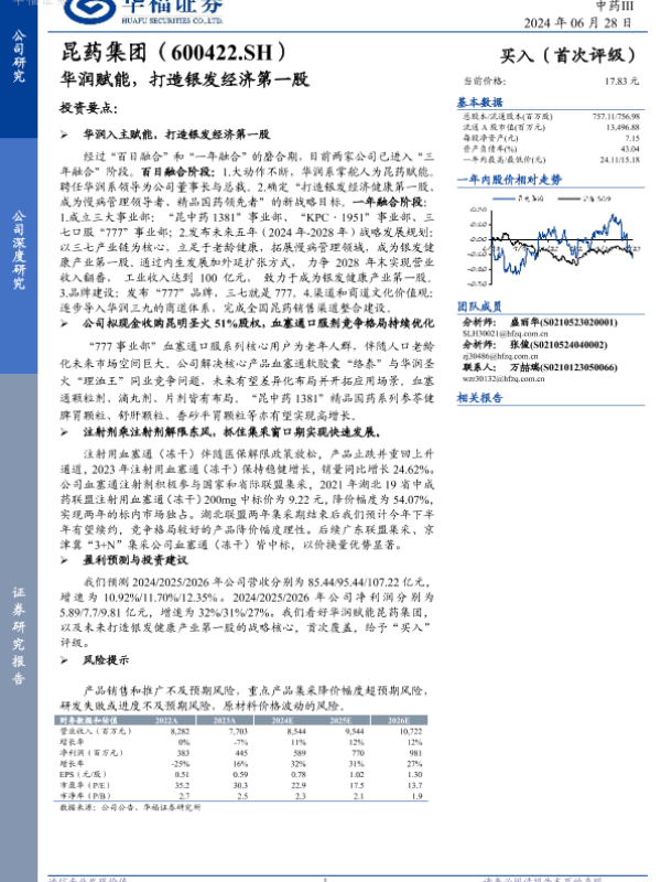 【华福证券】【20240628】昆药集团:华润赋能,打造银发经济第一股-22页 行业研究