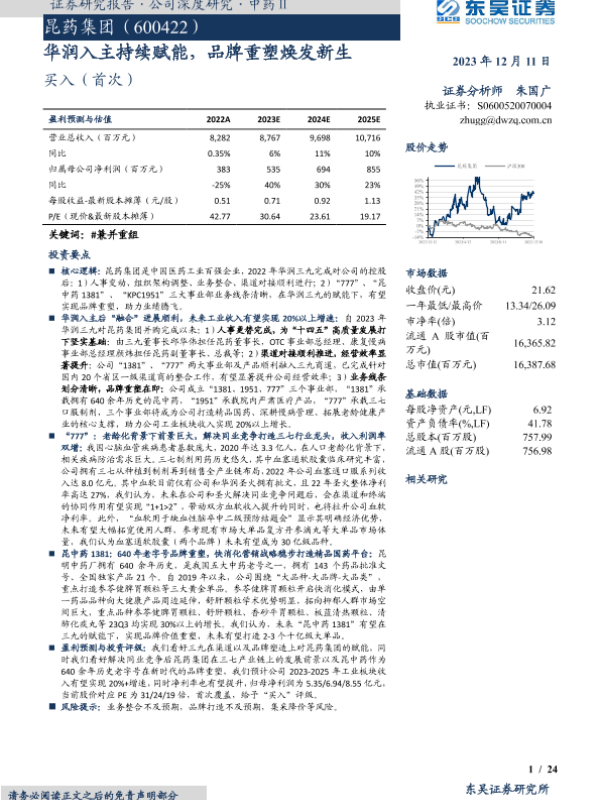 【东吴证券】【20231211】昆药集团-华润入主持续赋能,品牌重塑焕发新生-24页 行业研究