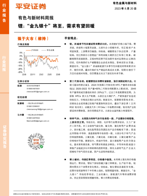 【平安证券】【20230820】20230820-平安证券-有色与新材料周报:锂:“金九银十”将至,需求有望回暖-18页 行业研究