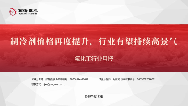 【东海证券】【20250813】氟化工行业月报:制冷剂价格再度提升-行业有望持续高景气-27页 证券期货研究报告