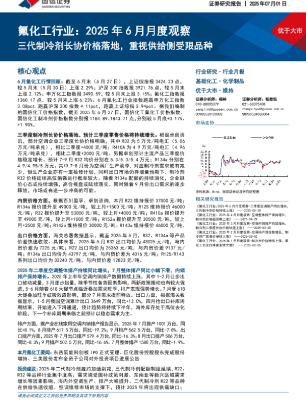 【国信证券】【20250701】2025年6月月度观察:三代制冷剂长协价格落地,重视供给侧受限品种-26页 行业研究