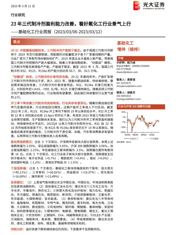 【光大证券】【20230311】23年三代制冷剂盈利能力改善,看好氟化工行业景气上行-29页 行业研究