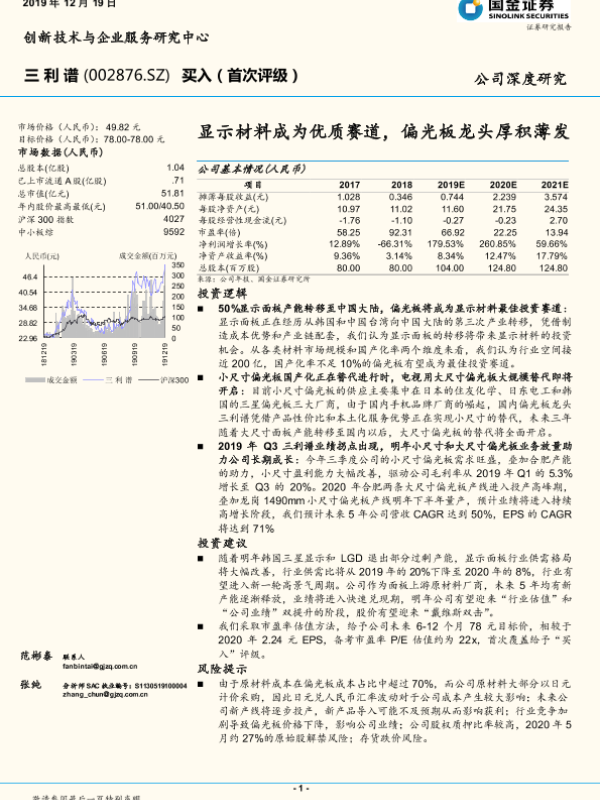 【国金证券】【20191219】显示材料成为优质赛道,偏光板龙头厚积薄发-20页 行业研究