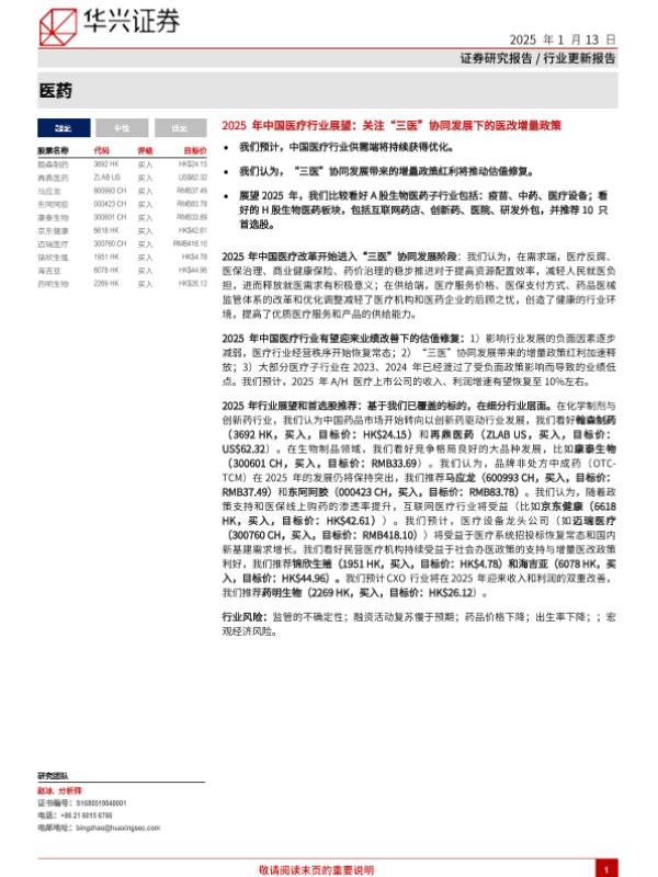 【华兴证券】【20250113】2025年中国医疗行业展望,关注“三医”协同发展下的医改增量政策-50页 行业研究