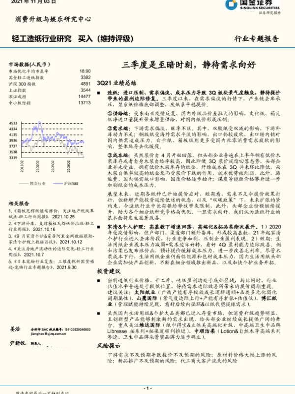 【国金证券】【20211103】轻工造纸行业:三季度是至暗时刻,静待需求向好-17页 行业研究