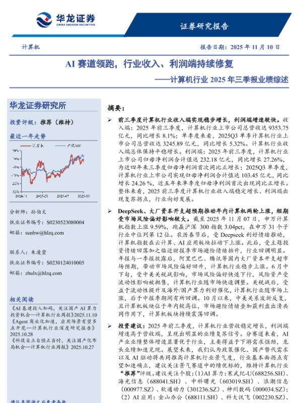 【华龙证券】【202511】AI赛道领跑,行业收入、利润端持续修复——计算机行业 2025年三季报业绩综述-21页 行业研究