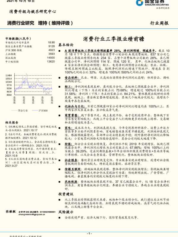 【国金证券】【20211019】消费行业周报:消费行业三季报业绩前瞻-14页 行业研究