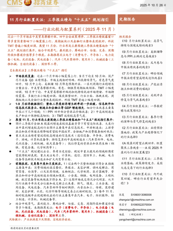 【海通证券】【202510】行业比较与配置系列(2025年11月):11月行业配置关注,三季报业绩与“十五五”规划指引-39页 证券期货研究报告