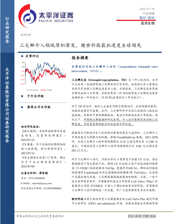 【太平洋证券】【20230729】三尖瓣介入领域厚积薄发,健世科技获批进度全球领先-21页 行业研究