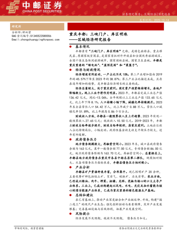 【中邮证券】【202510】重庆丰都:三峡门户、库区明珠 ——区域经济研究报告-24页 证券期货研究报告