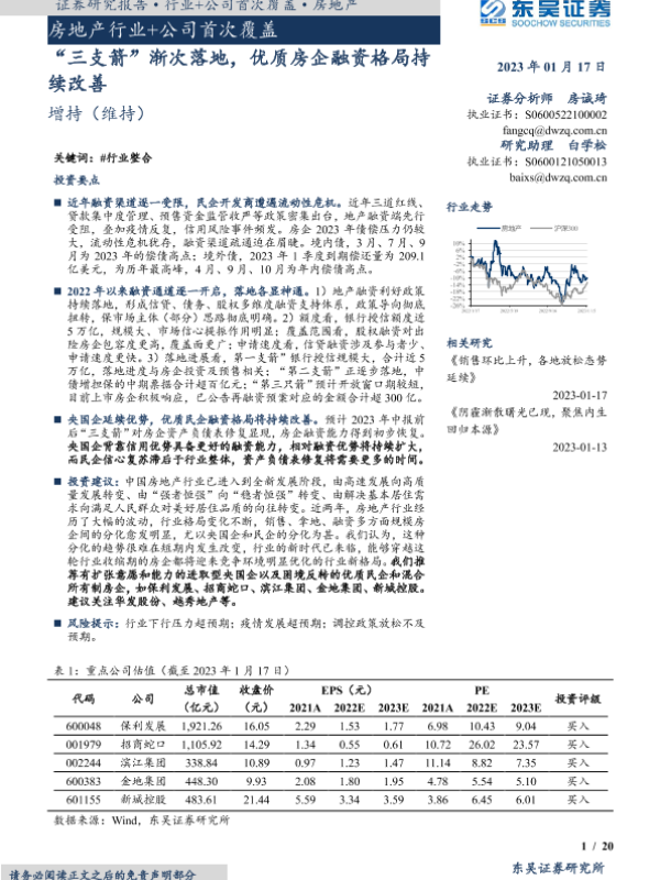 【东吴证券】【20230117】房地产行业+公司首次覆盖:“三支箭”渐次落地,优质房企融资格局持续改善-31页 行业研究