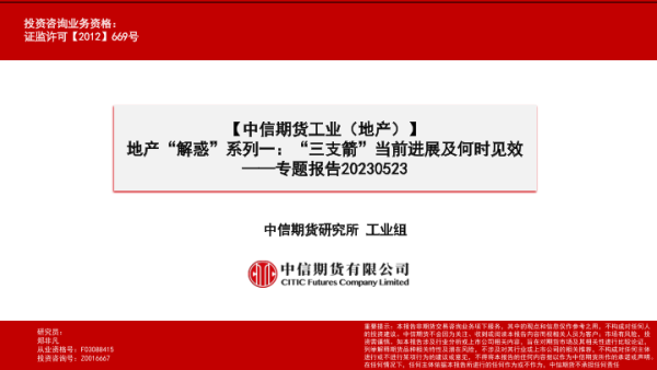 【中信期货】【20230523】工业(地产)专题报告:地产“解惑”系列一,“三支箭”当前进展及何时见效-26页 行业研究
