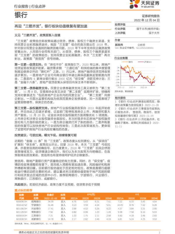 【天风证券】【20221204】银行行业点评:再迎“三箭齐发”,银行板块估值修复有望加速-11页 行业研究