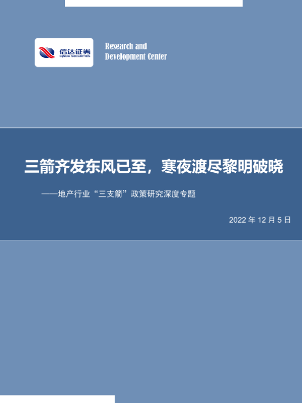 【信达证券】【20221205】地产行业“三支箭”政策研究深度专题:三箭齐发东风已至,寒夜渡尽黎明破晓-27页 行业研究