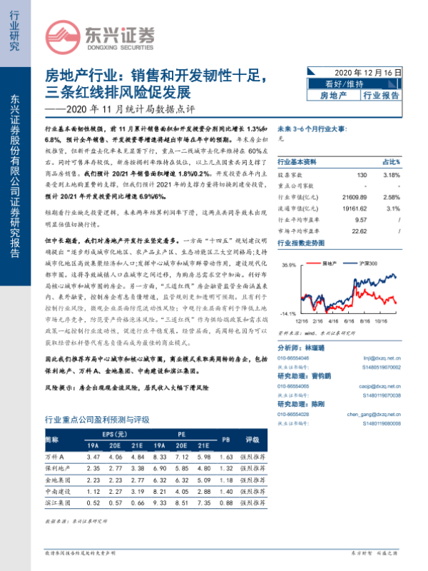 【东兴证券】【20201216】2020年11月统计局数据点评:房地产行业:销售和开发韧性十足,三条红线排风险促发展-10页 行业研究