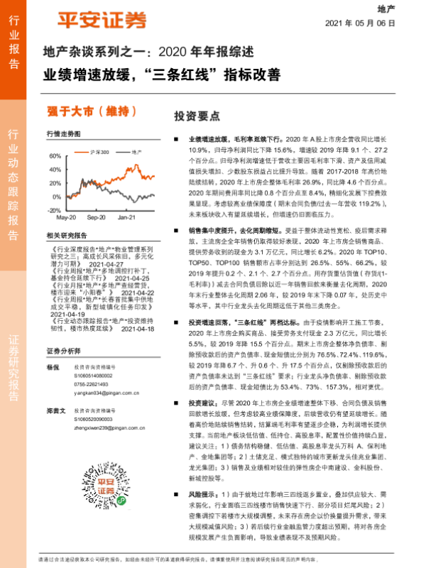 【平安证券】【20210506】2020年年报综述-业绩增速放缓,“三条红线”指标改善-17页 行业研究