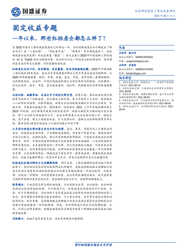 【国盛证券】【20210811】固定收益专题:一年以来,那些红档房企都怎么样了?-30页 行业研究