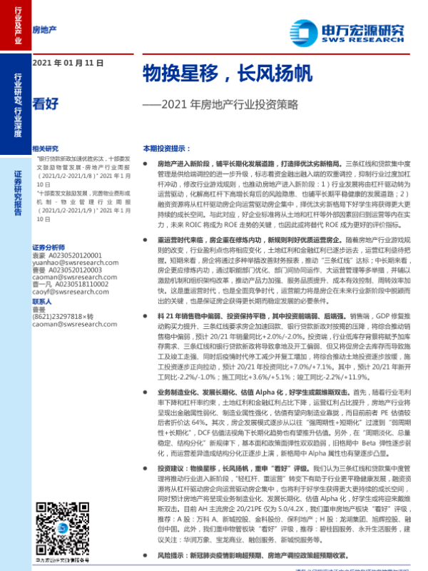 【申万宏源】【20210111】2021年房地产行业投资策略:物换星移,长风扬帆-71页 行业研究