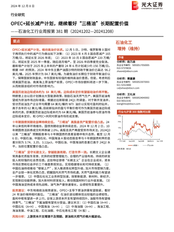 【光大证券】【20241208】20241208-光大证券-石油化工行业周报第381期:OPEC+延长减产计划,继续看好“三桶油”长期配置价值-17页 行业研究