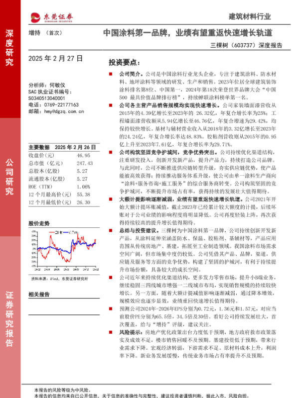 【东莞证券】【20250227】20250227-东莞证券-三棵树-603737.SH-深度报告:中国涂料第一品牌,业绩有望重返快速增长轨道-15页 行业研究