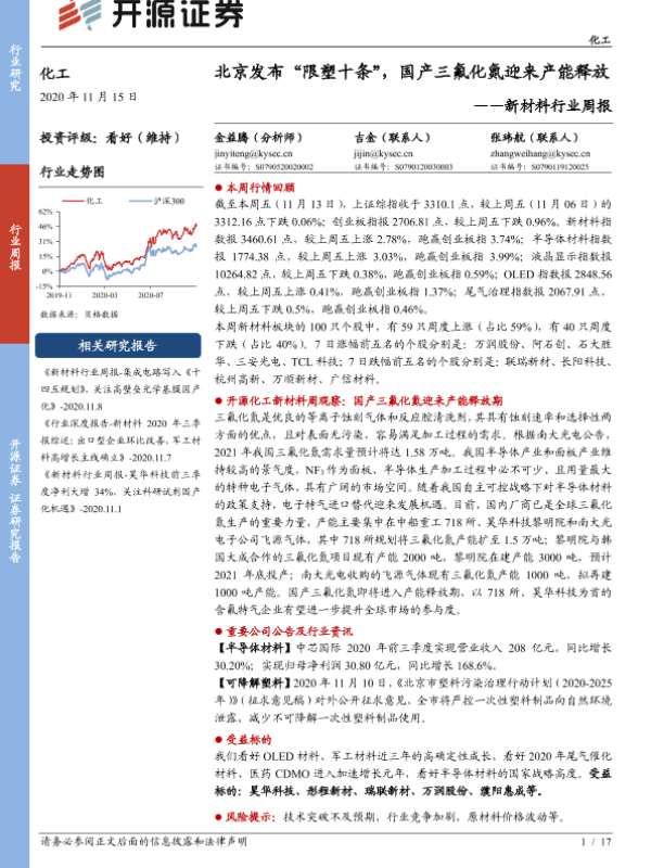 【开源证券】【20201115】新材料行业周报:北京发布“限塑十条”,国产三氟化氮迎来产能释放-17页 行业研究