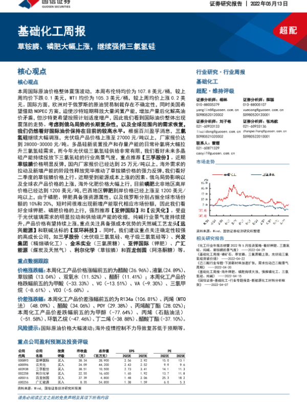 【国信证券】【20220513】20220513-国信证券-基础化工周报:草铵膦、磷肥大幅上涨,继续强推三氯氢硅-18页 行业研究