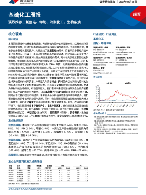 【国信证券】【20220325】20220325-国信证券-基础化工周报:强烈推荐三氯氢硅、钾肥、油脂化工、生物柴油-19页 行业研究