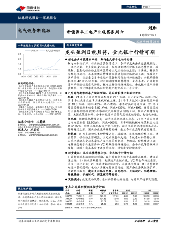 【国信证券】【20210825】电气设备新能源行业新能源车三电产业观察系列六:龙头盈利日就月将,金九银十行情可期-33页 行业研究