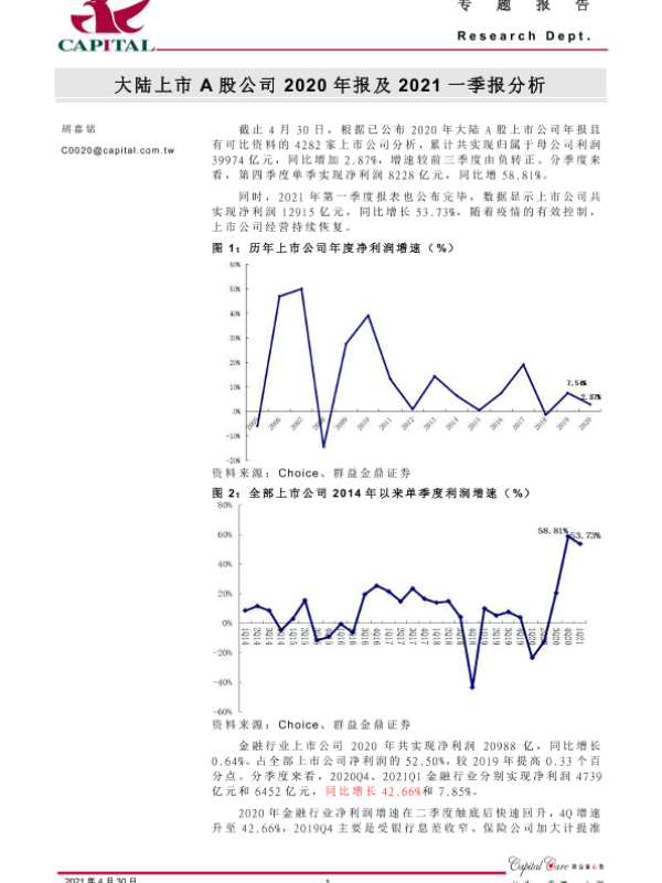 【群益证券】【20210430】大陆上市A股公司2020年报及2021一季报分析-6页 财报