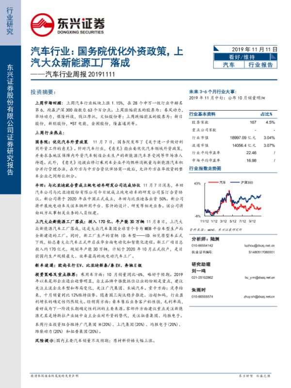 【东兴证券】【20191111】汽车行业周报:国务院优化外资政策,上汽大众新能源工厂落成-16页 行业研究