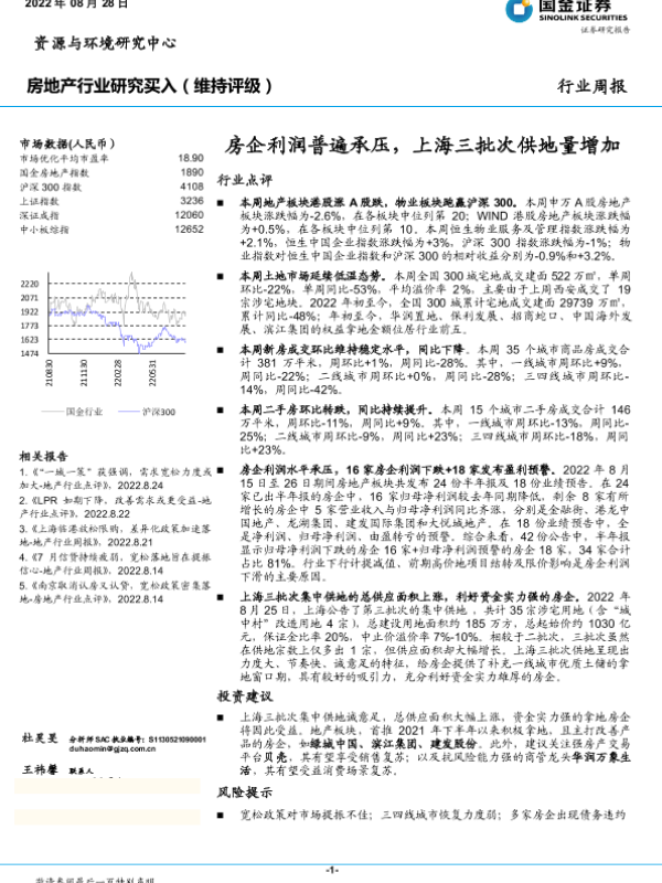 【国金证券】【20220828】房企利润普遍承压,上海三批次供地量增加-19页 行业研究