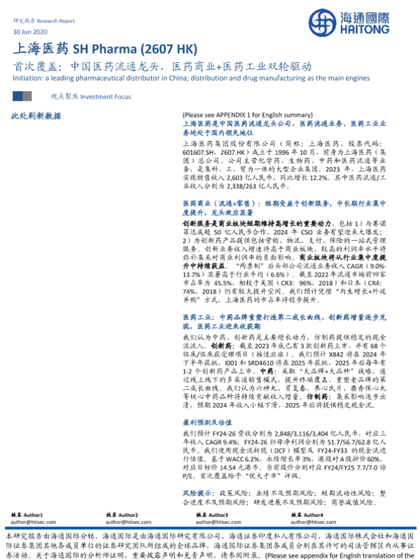 【海通国际】【20240726】上海医药(2607.HK)首次覆盖:中国医药流通龙头,医药商业+医药工业双轮驱动-33页 行业研究