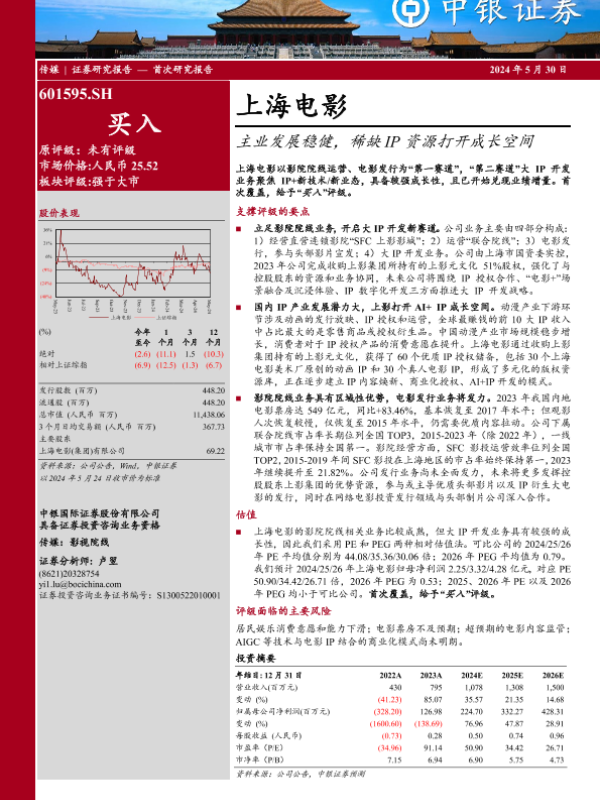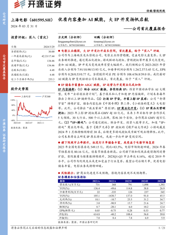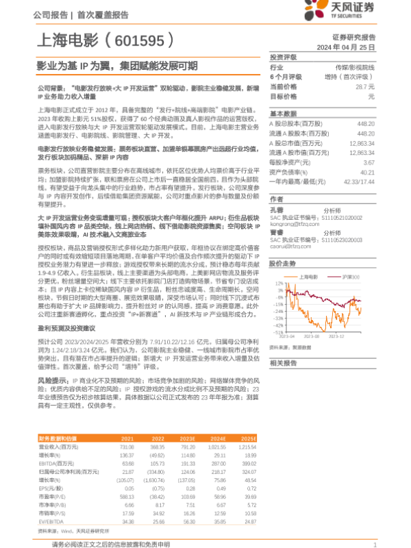 【天风证券】【20240425】上海电影-601595.SH-影业为基IP为翼,集团赋能发展可期-30页 行业研究