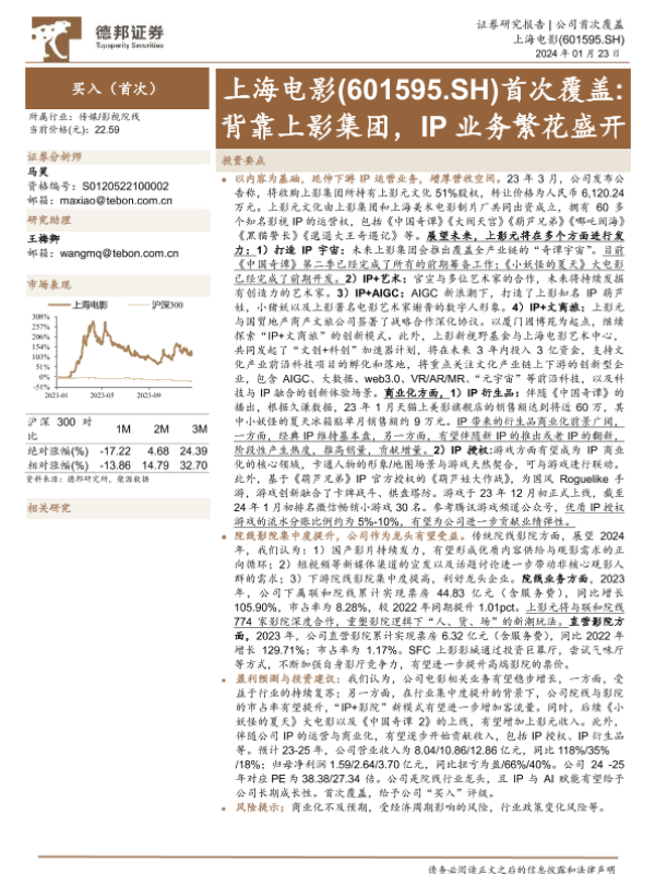 【德邦证券】【20240123】20240123-德邦证券-上海电影-601595.SH-首次覆盖:背靠上影集团,IP业务繁花盛开-27页 行业研究