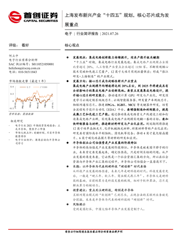 【首创证券】【20210726】20210726-首创证券-电子行业简评报告:上海发布新兴产业“十四五”规划,核心芯片成为发展重点-4页 行业研究