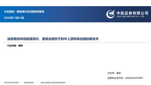 【中航证券】【20221114】20221114-中航证券-新能源行业月度投资报告:加息叠加传统能源涨价,重视业绩优于的中上游和低估值的新技术-18页 行业研究