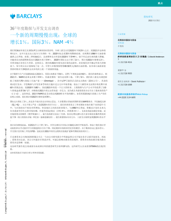 【巴克莱】【20210105】美股石油服务与设备行业第36次年度E&P支出调查:一个新的周期缓慢出现-37页 行业研究